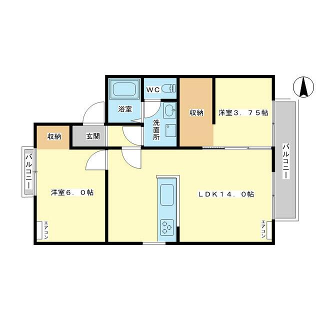 | 間取り | 2LDK(LDK6.5・洋6・洋6・和6) | 主要採光面 | 東 |
